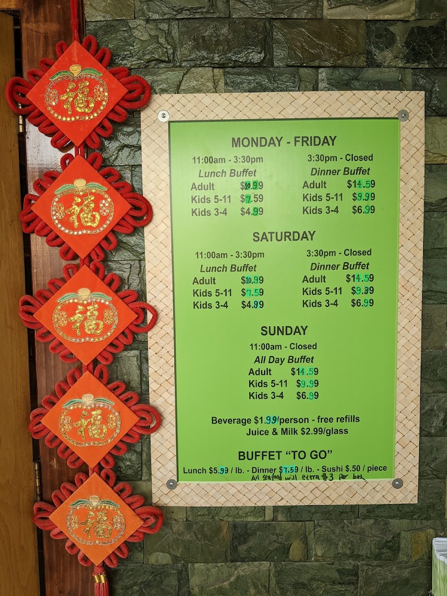 Overall, the menu structure accommodates a variety of dining preferences, including buffet-style serving, individual lunch plates, and bulk party trays. Visitors can expect coverage of standard Asian buffet staples, sushi, hibachi-grilled options, and a range of appetizers and main courses suitable for casual meals or takeout orders.